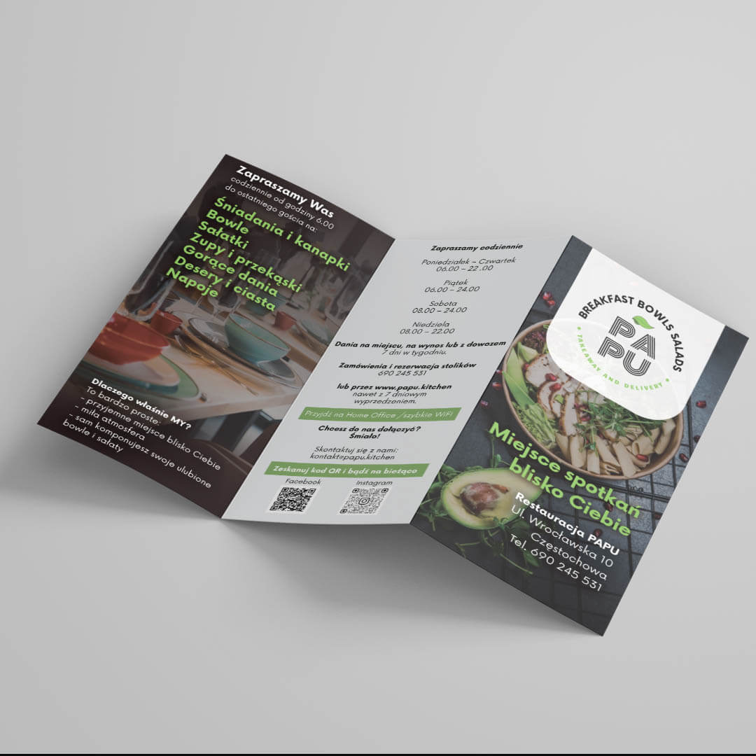 Ulotka reklamowa dla Restauracji PAPU